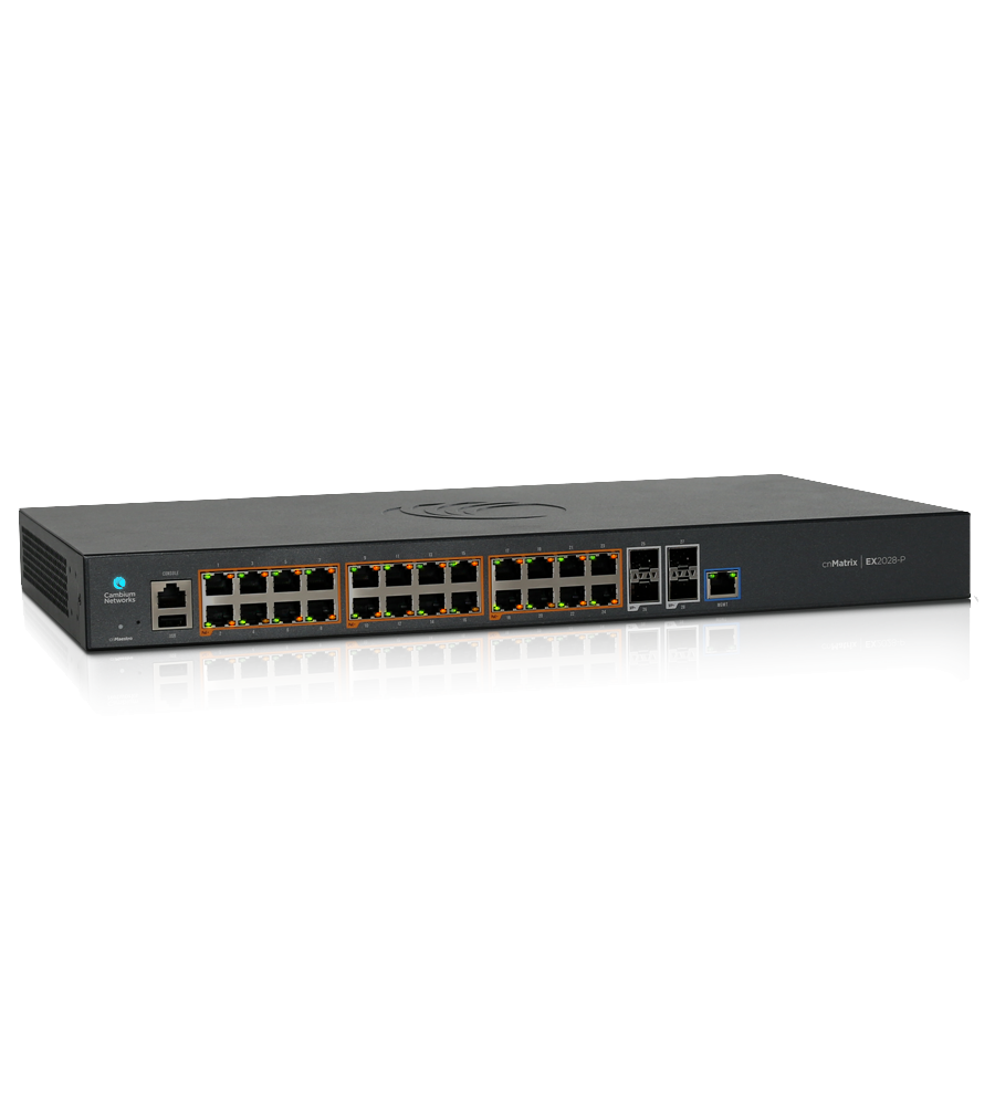 Descubre el Cambium Networks EX2028-P, un switch PoE+ gestionado en la nube con 24 puertos Gigabit, 4 puertos SFP+, y funcionalidades avanzadas de capa 2/3. Perfecto para redes empresariales seguras y de alto rendimiento. Ideal para implementación sin contacto y automatización basada en políticas.