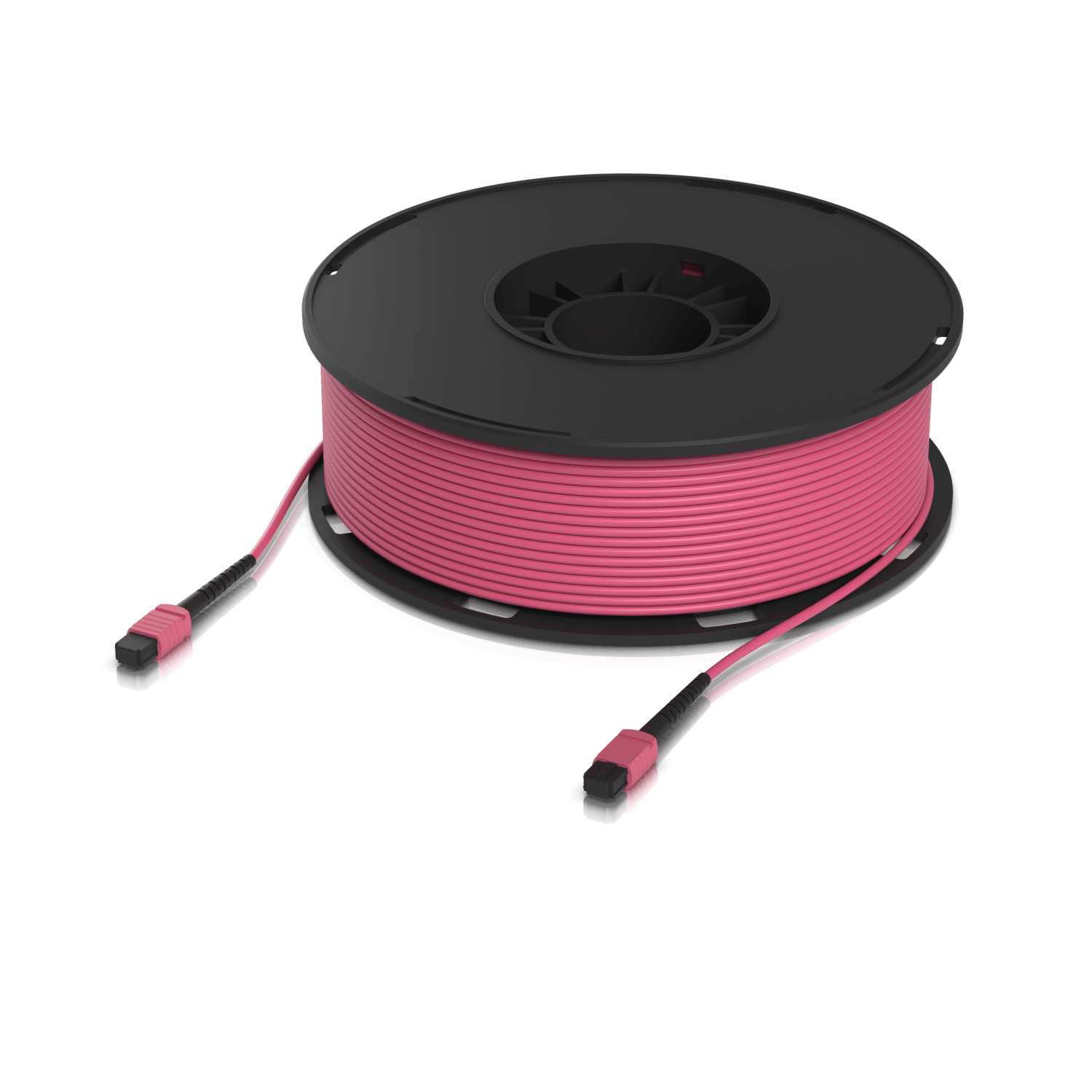 Jumper MPO OM4 de 100m para interconexiones de alta densidad.