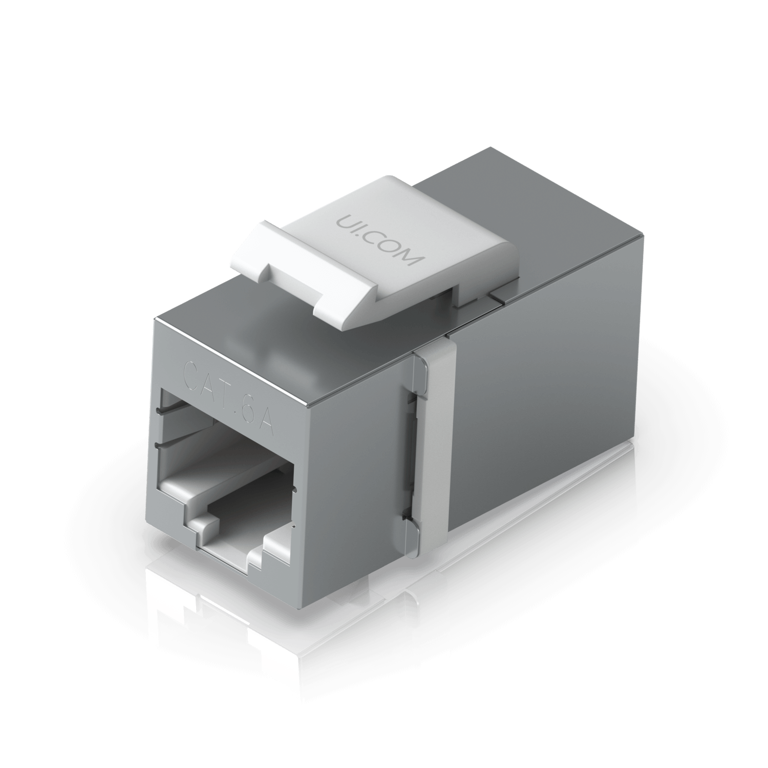 KCAU Copla keystone RJ45‑RJ45 Cat6A blindada STP/FTP para cableado estructurado