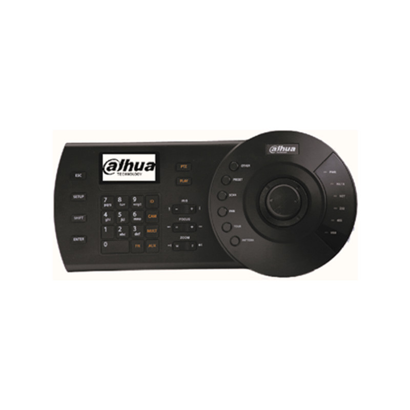 El teclado joystick Dahua es un controlador profesional diseñado para la operación precisa de cámaras PTZ en sistemas de videovigilancia avanzados. Permite el control de movimientos panorámicos, inclinación y zoom mediante su joystick de tres ejes, facilitando el monitoreo activo de instalaciones de seguridad.